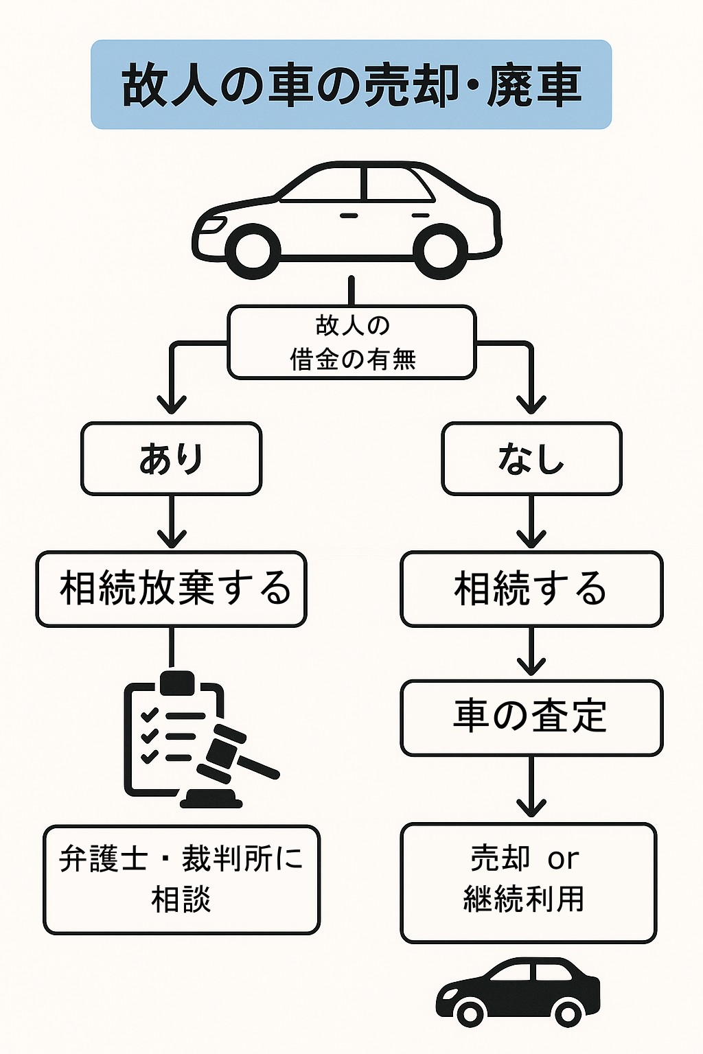 故人の車の処分・廃車や売却手続きの大まかな流れ